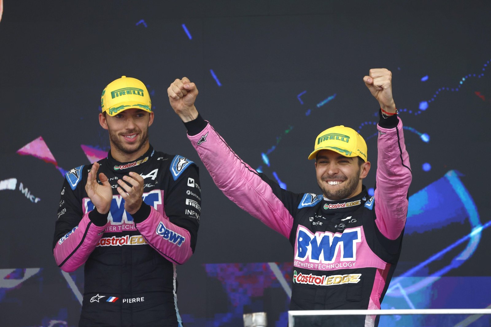A classificação adiada para a manhã de domingo já havia mostrado sinais de que a Alpine poderia surpreender. Ocon largou em quarto após aproveitar as condições mistas da sessão, enquanto Gasly não conseguiu marcar tempo no Q2 e partiu apenas de 13º.