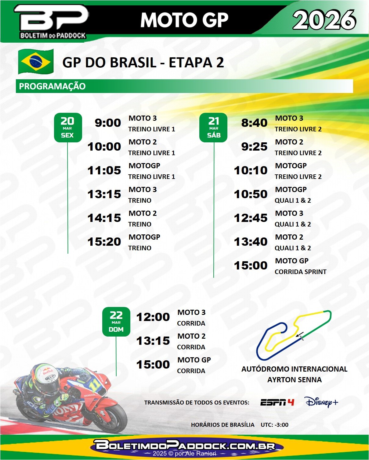 Neste fim de semana a MotoGP desembarca no Brasil para disputa da segunda etapa do calendário. A prova acontece entre os dias 20 e 22 de março no Autodromo Internacional Ayrton Senna, em Goiânia.