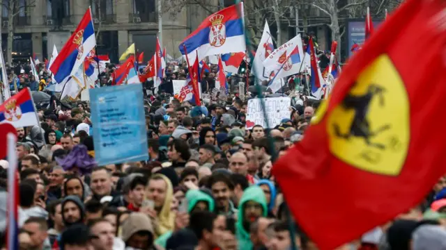 “Sempre que protestamos contra a injustiça, ela está lá”, afirma Igor Balmazovic, de 54 anos, dono da bandeira, em entrevista à BBC News Sérvia. “Nunca pensei que precisaríamos dela de novo. É devastador. Lutamos contra as mesmas injustiças, contra as mesmas pessoas, há décadas.”