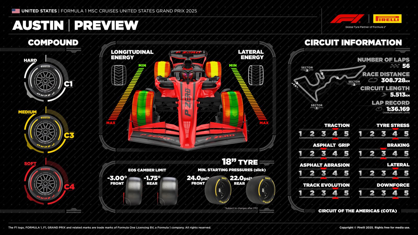 Em Austin eles ainda terão o evento Sprint, isso significa não ter muito tempo para avaliar os pneus em treinos livres, já que existe apenas uma sessão de 60 minutos na sexta-feira. No entanto, a corrida Sprint vai mostrar por quantas voltas a eficiência dos pneus macios ou médios pode oferecer de autonomia para a corrida principal, no domingo.