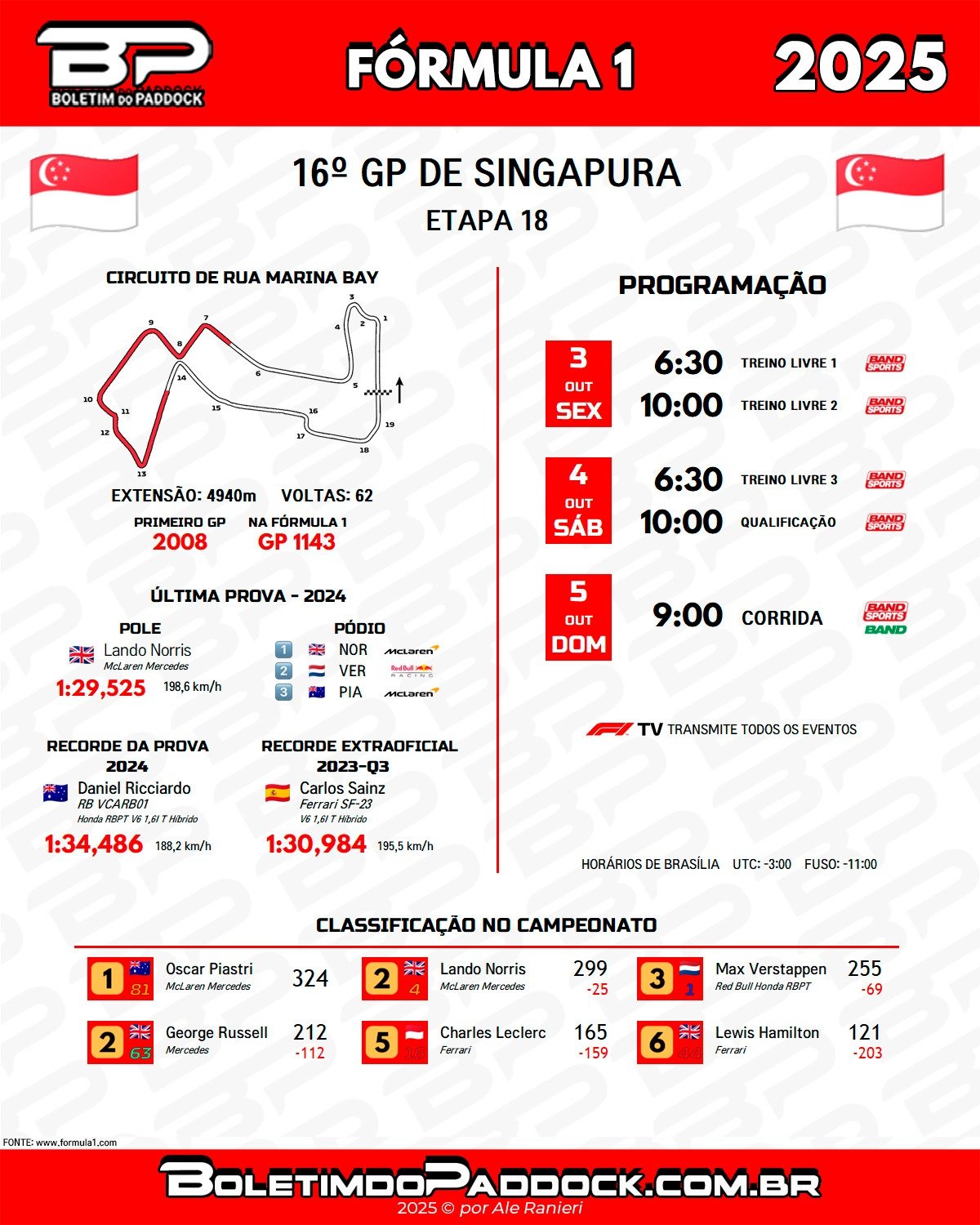 Programação do GP de Singapura – Foto: Ale Ranieri / Boletim do Paddock