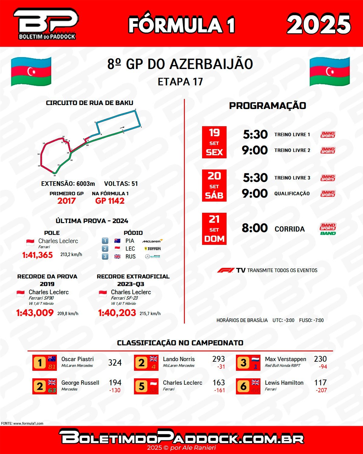 Veremos qual história será contada no Azerbaijão e se Piastri conseguirá repetir a vitória de 2024.