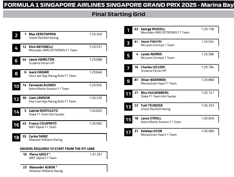 Here’s your points-finishers from the Singapore Grand Prix 📈#F1 #SingaporeGP pic.twitter.com/ZWENfzdvHo