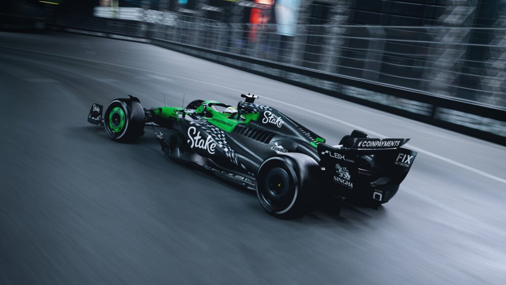 No caso da equipe comandada por Gabriel Bortoleto e Nico Hülkenberg, o layout principal da equipe ganhou um detalhe personalizado com a bandeira quadriculada, aquela que marca o final das sessões e das corridas.