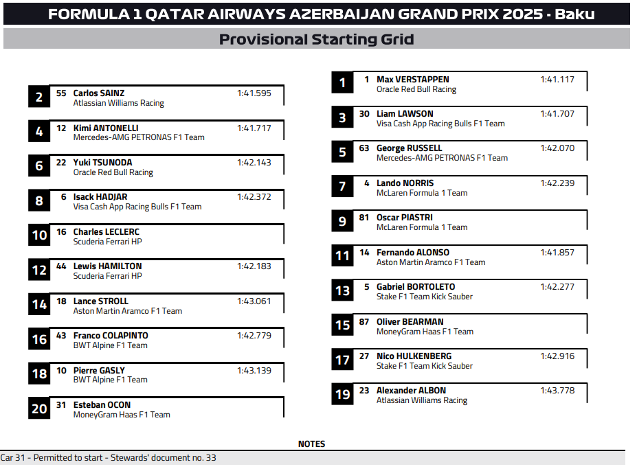 A sensational result for Sainz and some stellar drives from Antonelli, Lawson and Tsunoda 👏👏👏#F1 #AzerbaijanGP pic.twitter.com/Z2cHQ8Sff8